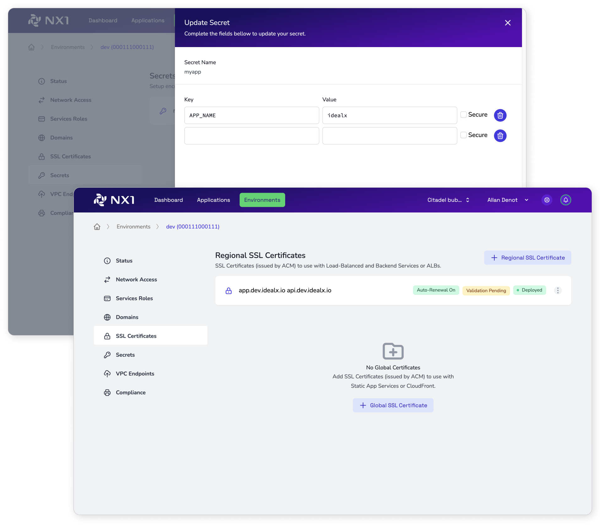 Easily create secure environments and link to your apps
